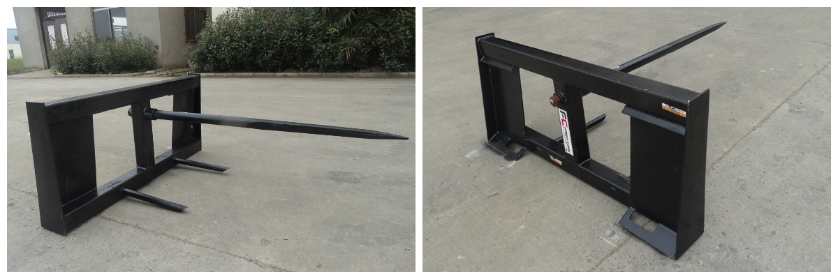 Operations:The hay bale spears are designed to increase your leverage and safety when rolling the bale back towards the cab.